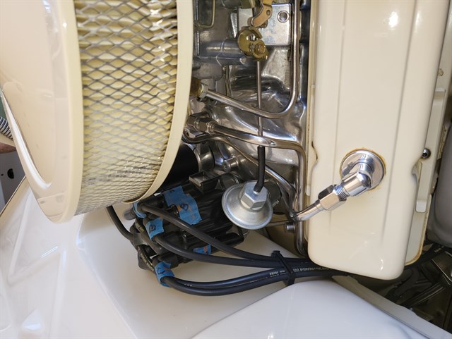 paired with a Turbo 350 transmission. The rear end is an 8" Ford. The fuel system
