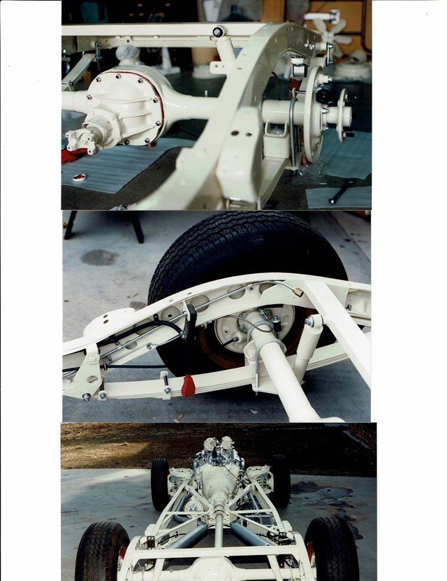 The drivetrain of the car utilizes a Mustang II front end and parallel leaf rear springs.