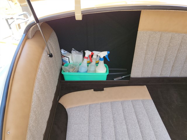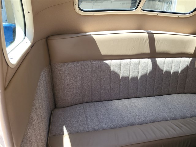 underside. The upholstery work was done by Mike Ambrose using taupe-colored leather