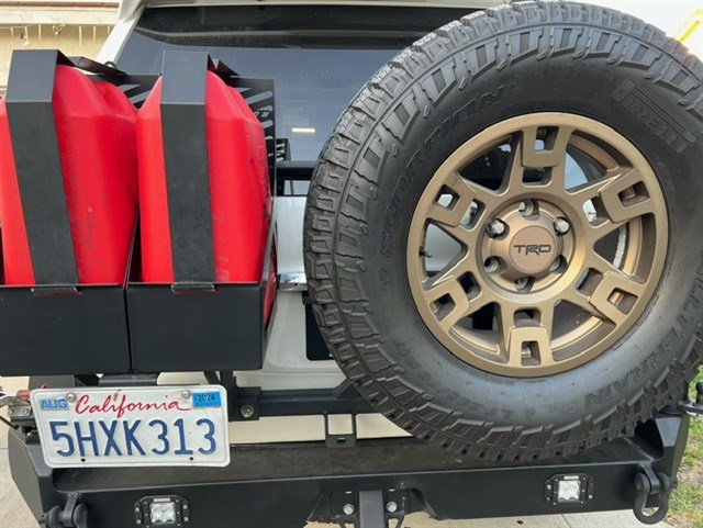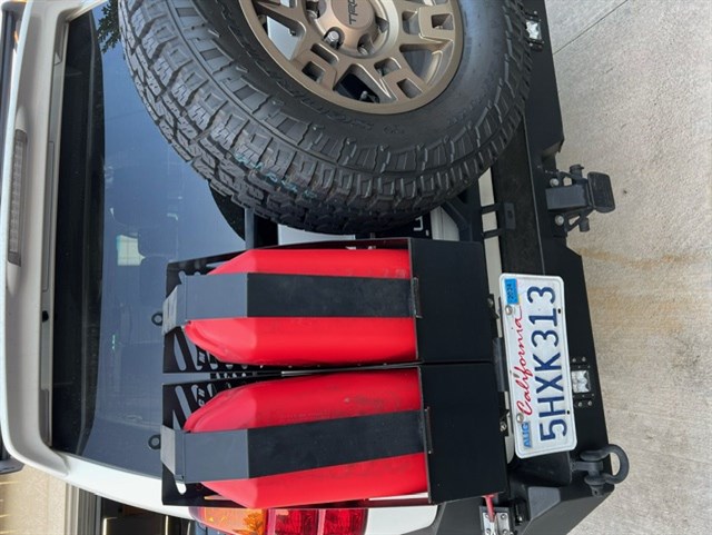 Rear gas cans and carriers