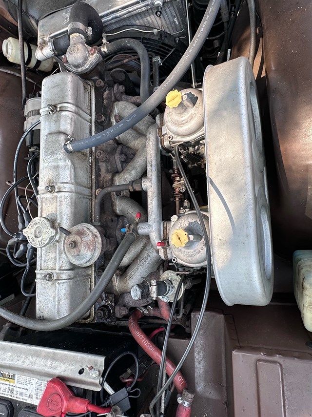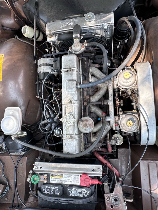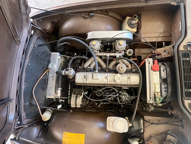 Under the hood you’ll find a 2.5-liter inline-six that’s one of the reasons so many enthusiasts love the TR6. With a larger displacement than many other classic British roadsters, it provides plenty of get up and go and runs smoothly thanks to the proper care its received over the years. A new fuel pump and dual Stromberg carbs that were added at the end of 2024 help it fire up readily, and a modern aluminum radiator keeps things running cool. The four-speed manual transmission was rebuilt in 2019, and the upgraded stainless steel dual exhaust gives lets you hear the motor’s iconic notes as you enjoy smooth action through all the gears.