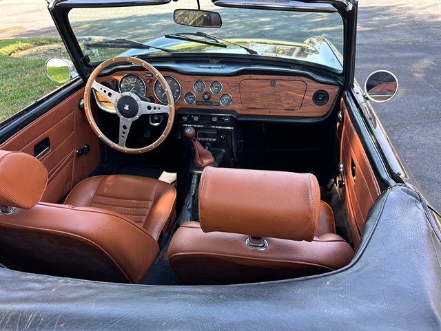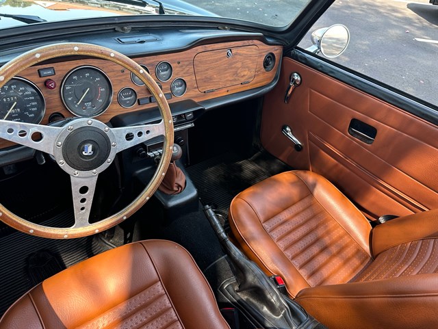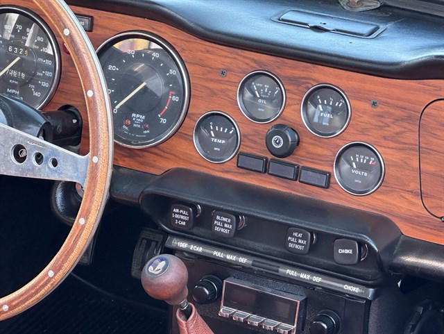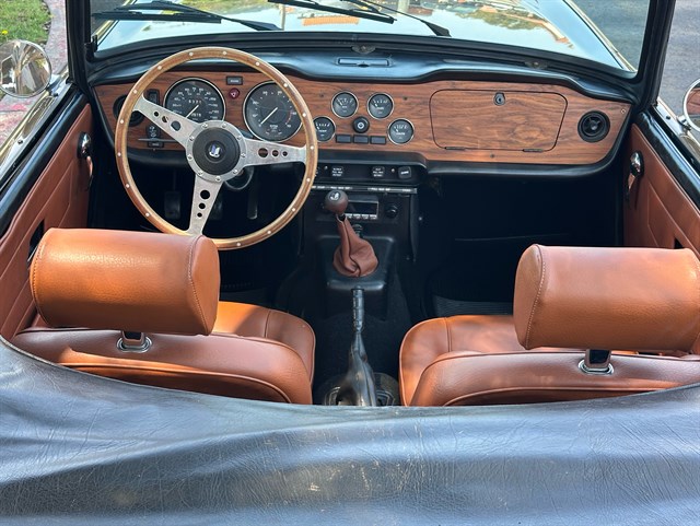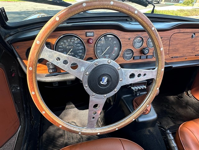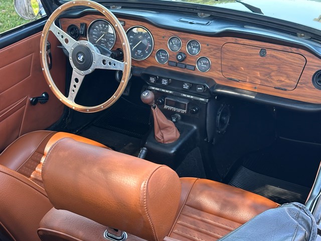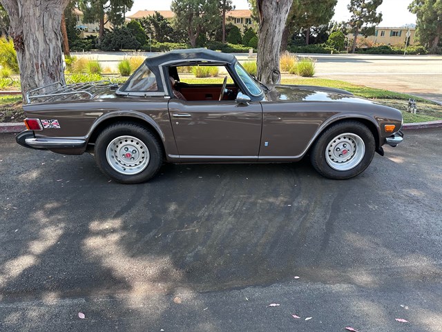 This particular TR6’s history has seen it in Los Angeles for the past six years, and Florida for at least the four years before that, with two owners that kept detailed maintenance records. Other cosmetic work was done on it in the Maryland area during the early 2000s. As a 1975 model, it also offers California buyers peace of mind as the last year exempt from smog testing, and it comes with a top cover as well as both a cockpit cover and exterior cover for storage. With 73,500 miles and a clean and clear title, this TR6 is primed for its next adventure with another caring owner. Call today!